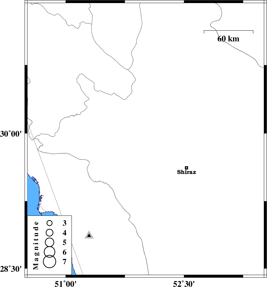 | 2017/03/30 | 14:52:20.9 | 19:22:20.9 | 29.928 | 52.014 | 6 | ML:3.1 | Fars Province, 37 km South of Ardakan |