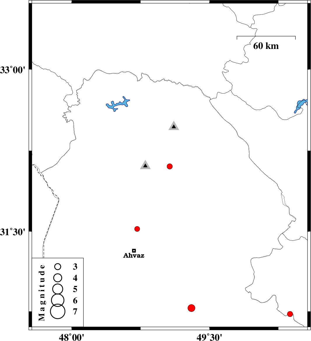 | 2017/03/27 | 01:56:53.6 | 06:26:53.6 | 31.523 | 48.713 | 15 | ML:2.5 | Khoozestan Province, 23 km North of Ahvaz | ||