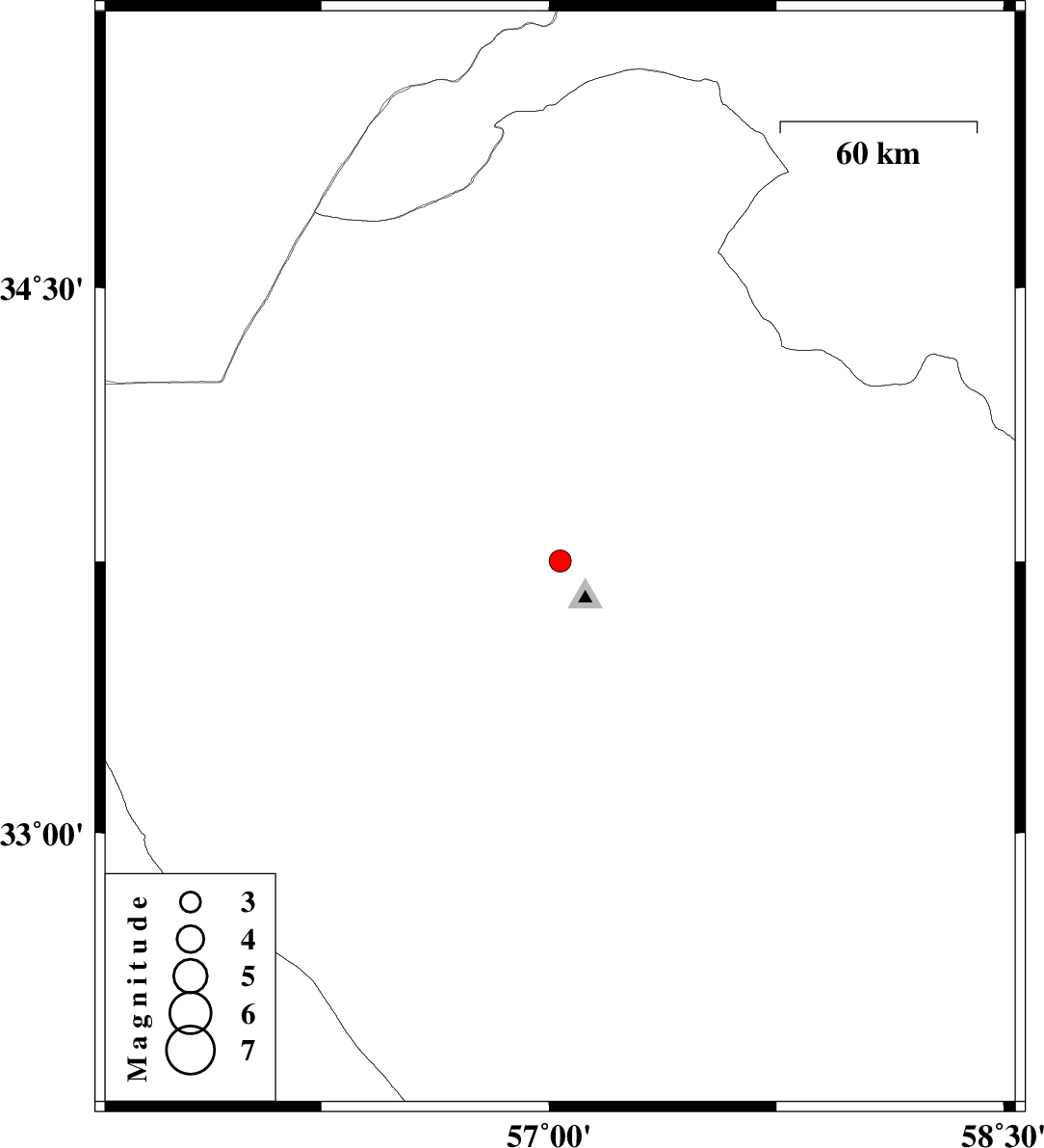 | 2017/04/04 | 12:29:08.4 | 16:59:08.4 | 33.752 | 57.037 | 7 | ML:3.3 | Yazd Province, 20 km North-East of Tabas | ||
