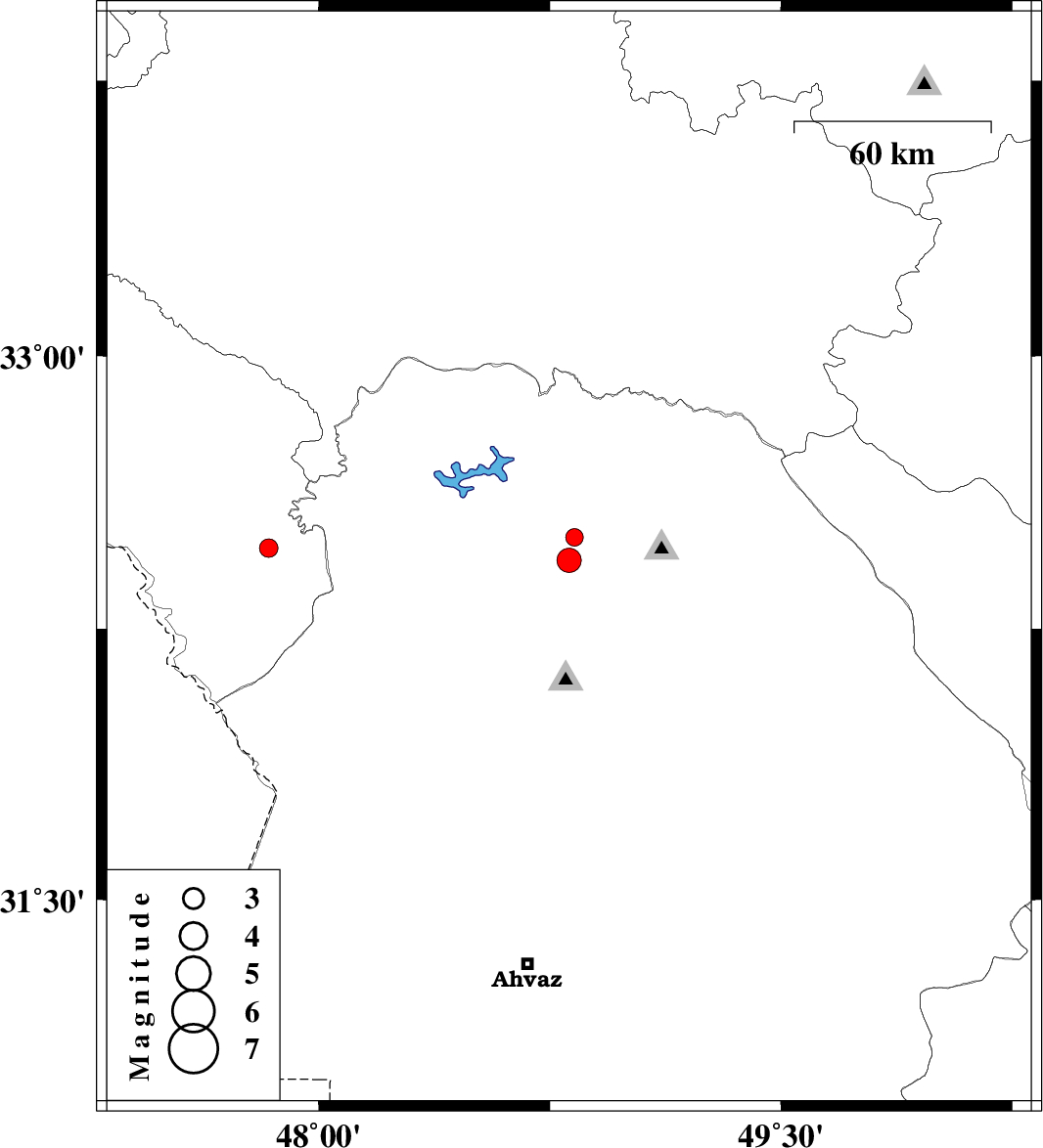 | 2017/04/11 | 07:40:56.2 | 12:10:56.2 | 32.439 | 48.812 | 15 | ML:3.5 | Khoozestan Province, 28 km -West of Lali | ||