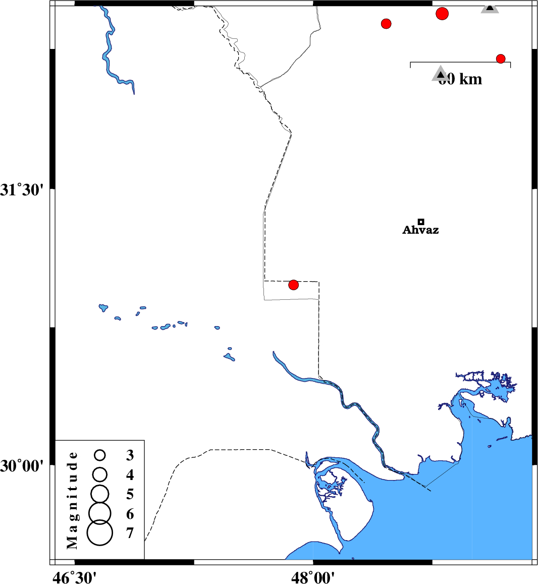 | 2017/04/11 | 07:40:56.2 | 12:10:56.2 | 32.439 | 48.812 | 15 | ML:3.5 | Khoozestan Province, 28 km -West of Lali |