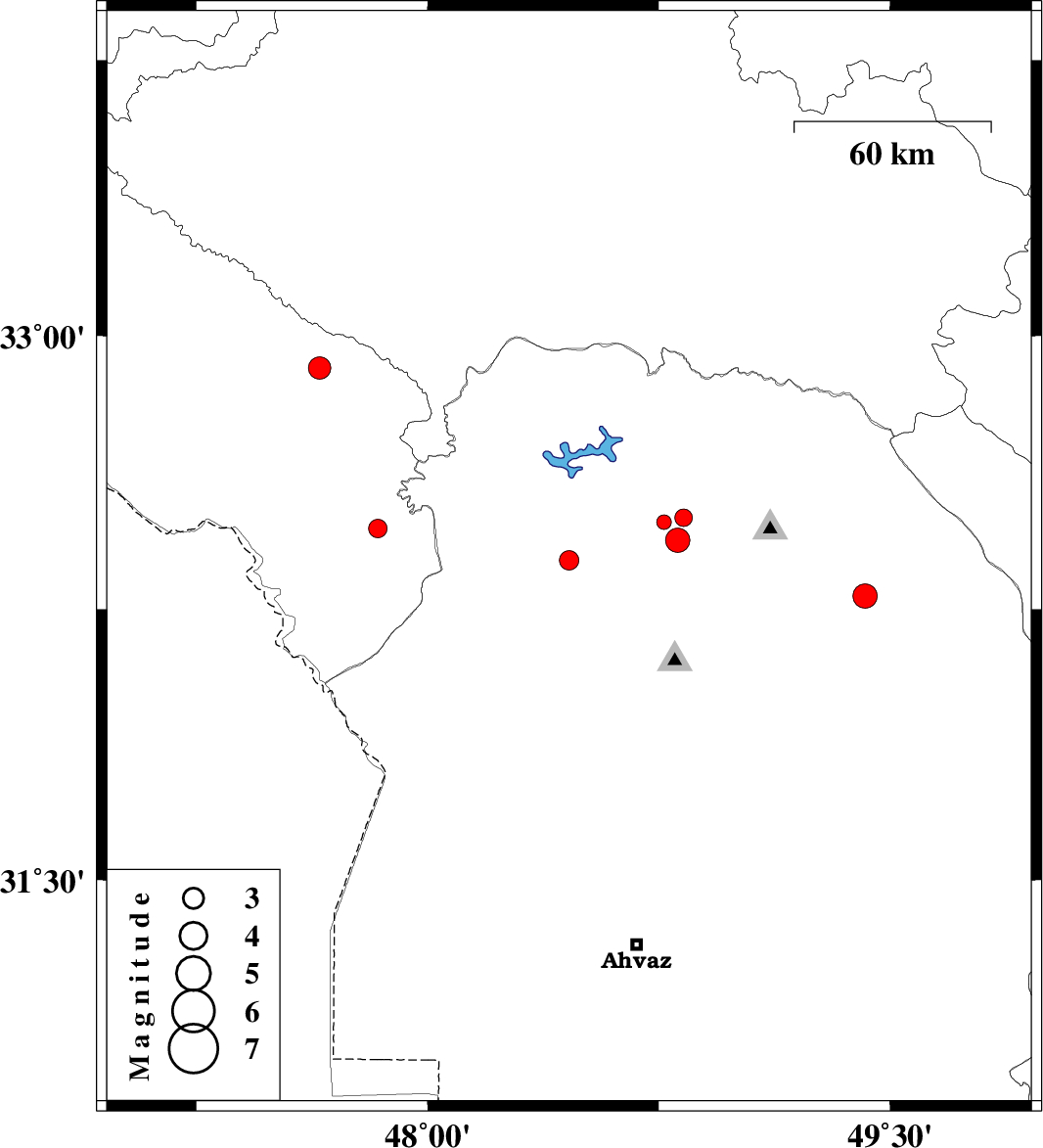 | 2017/04/11 | 07:40:56.2 | 12:10:56.2 | 32.439 | 48.812 | 15 | ML:3.5 | Khoozestan Province, 28 km -West of Lali | ||