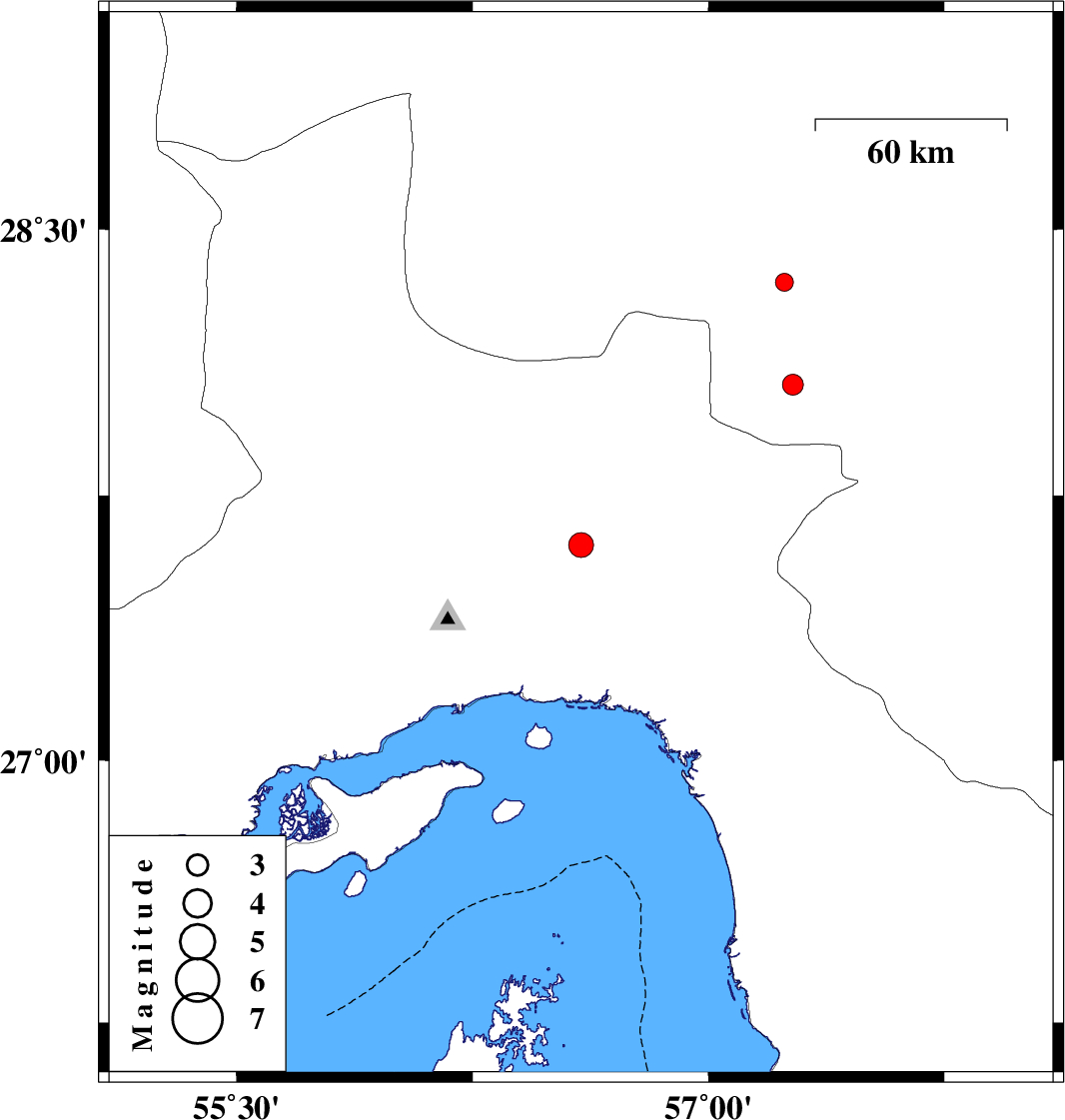 | 2017/04/15 | 07:13:08.6 | 11:43:08.6 | 27.61 | 56.595 | 13 | ML:3.5 | Hormozgan Province, 57 km North-East of Bandar-e abbas | ||