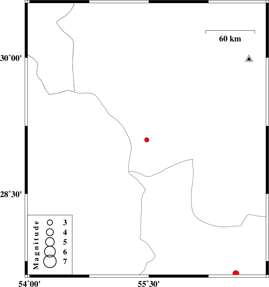 | 2017/04/17 | 09:45:51.3 | 14:15:51.3 | 29.097 | 55.474 | 14 | ML:2.5 | Kerman Province, 43 km South-West of Sirjan | ||