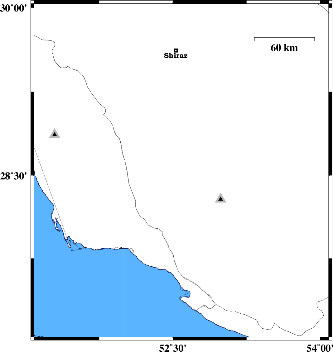 | 2017/04/22 | 05:01:57.4 | 09:31:57.4 | 28.925 | 51.325 | 14 | ML:3 | Bushehr Province, 8 km of Ahram | ||