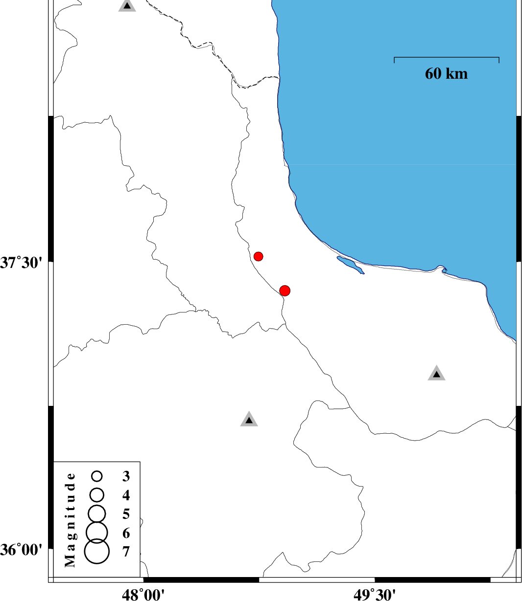 | 2017/05/02 | 02:08:08.2 | 06:38:08.2 | 37.349 | 48.916 | 14 | ML:3.1 | Gilan Province, 24 km -West of Masal | ||