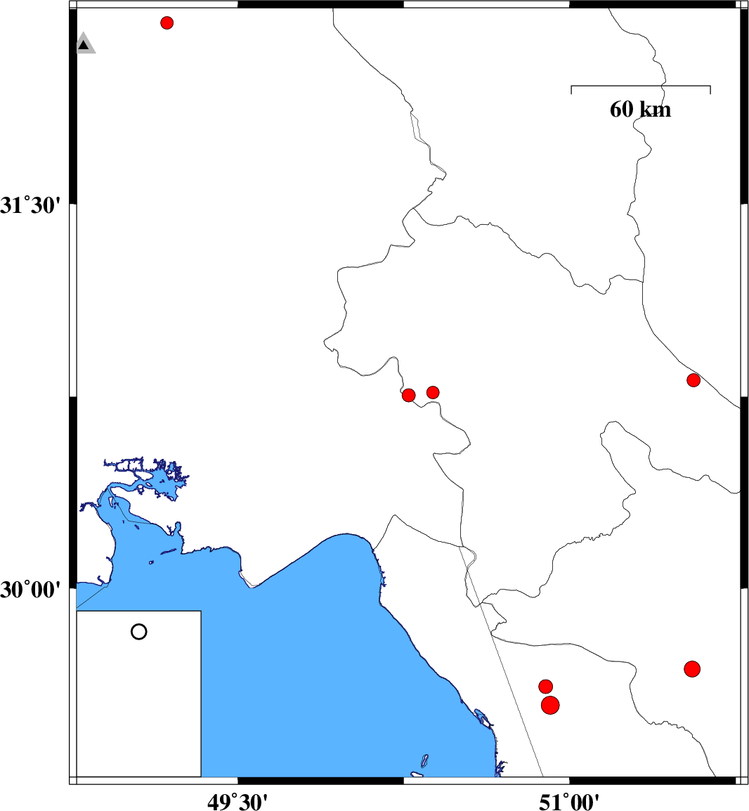 | 2017/04/28 | 07:23:45.4 | 11:53:45.4 | 30.815 | 51.56 | 15 | ML:2.7 | Kohkiluieh va boyerahmad Province, 11 km -East of Sisakht | ||