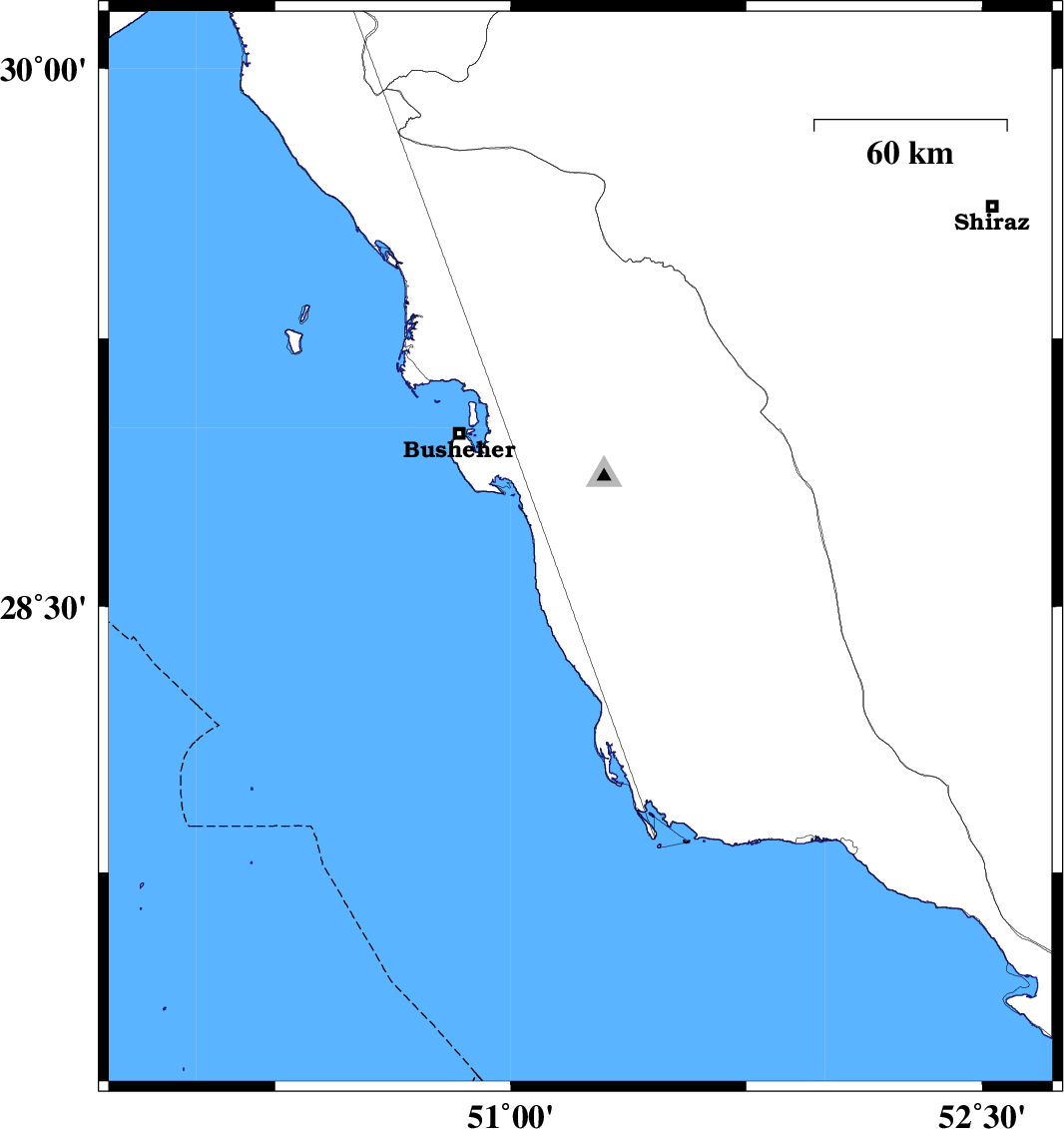 | 2017/04/18 | 01:28:48.8 | 05:58:48.8 | 29.612 | 50.891 | 18 | ML:2.8 | Bushehr Province, 37 km -East of Bandar-e genaveh |