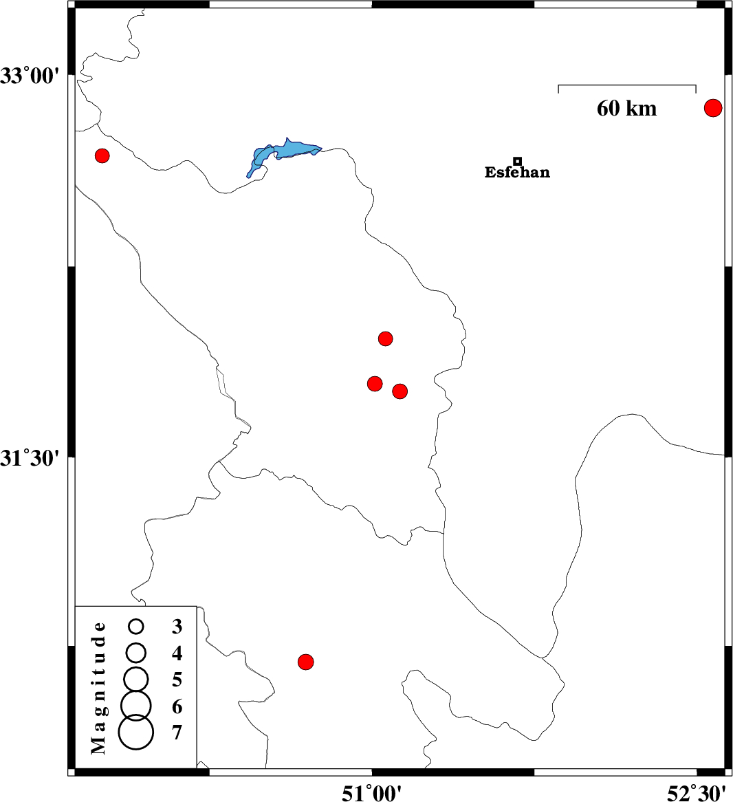 | 2017/05/16 | 04:47:55.4 | 09:17:55.4 | 31.759 | 51.129 | 15 | ML:3.1 | Chaharmahal Bakhtiari Province, 28 km South-West of Borujen | ||