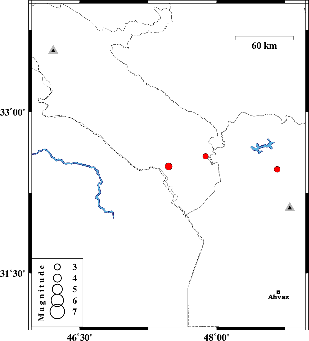 | 2017/05/13 | 20:32:02.2 | 01:02:02.2 | 32.469 | 48.664 | 18 | ML:2.9 | Khoozestan Province, 29 km -East of Andimeshk | ||