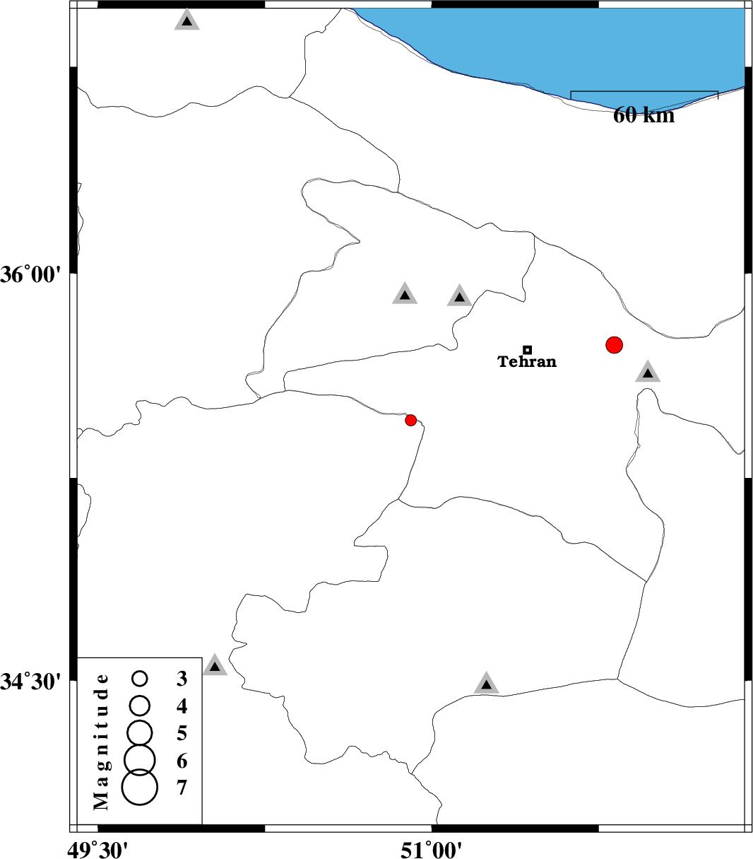 | 2017/04/28 | 03:20:23.0 | 07:50:23.0 | 35.738 | 51.82 | 14 | ML:3.4 | Tehran Province, 23 km -West of Damavand |