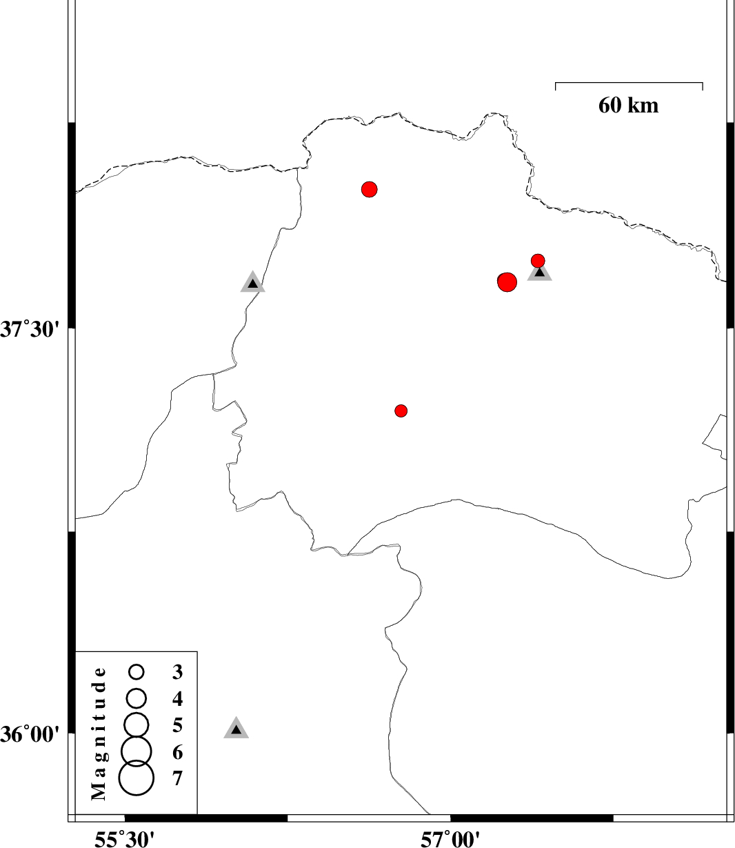 | 2017/05/25 | 03:44:58.5 | 08:14:58.5 | 37.195 | 56.772 | 6 | ML:2.6 | Khorasan(north) Province, 42 km South-West of Ashkhaneh | ||