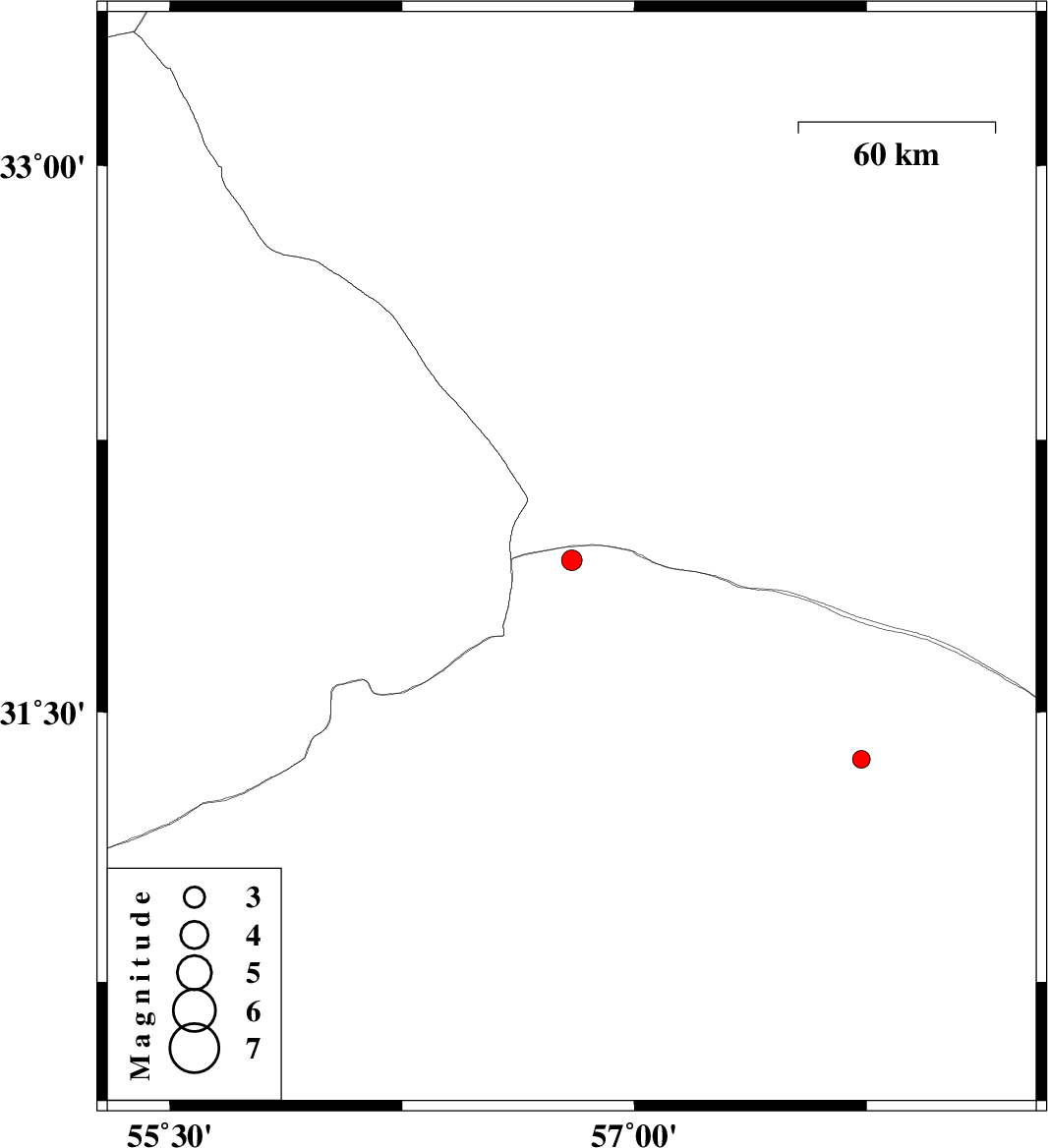 | 2017/05/29 | 19:52:18.2 | 00:22:18.2 | 31.919 | 56.798 | 15 | ML:2.9 | Kerman Province, 73 km North of Ravar | ||