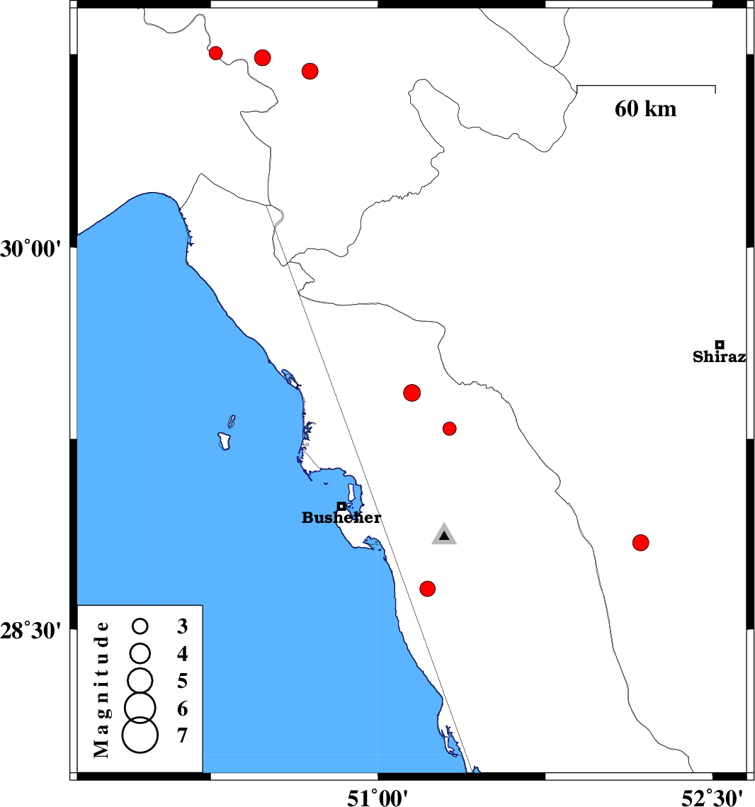 | 2017/05/09 | 03:00:27.3 | 07:30:27.3 | 28.659 | 51.222 | 17 | ML:3.1 | Bushehr Province, 15 km -West of Khormog | ||