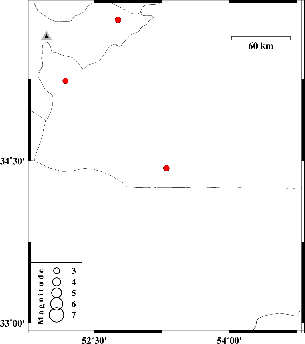 | 2017/06/07 | 09:32:58.1 | 14:02:58.1 | 35.229 | 52.18 | 14 | ML:2.8 | Semnan Province, 14 km -West of Garmsar |