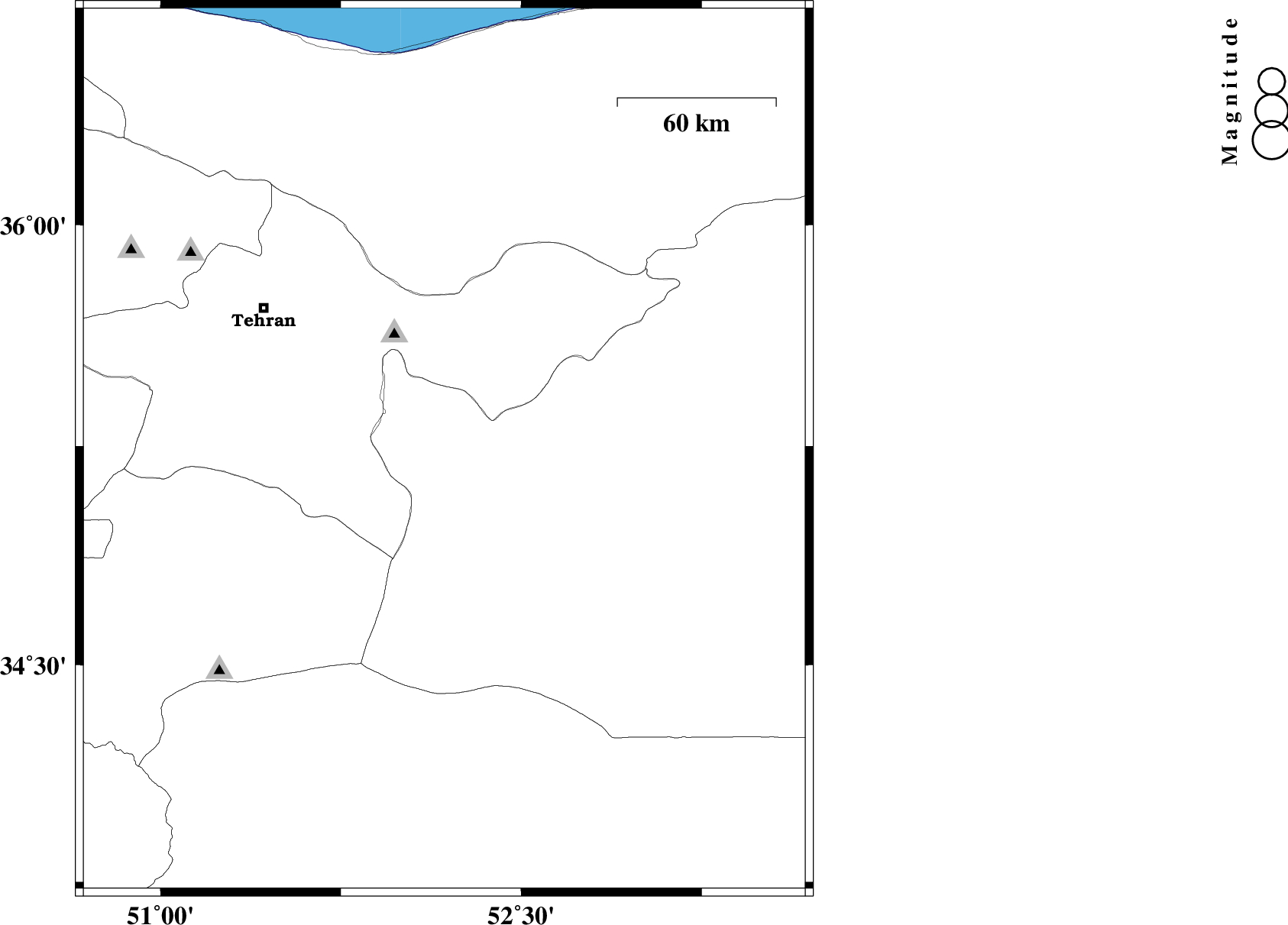 | 2017/06/07 | 09:32:58.1 | 14:02:58.1 | 35.229 | 52.18 | 14 | ML:2.8 | Semnan Province, 14 km -West of Garmsar |