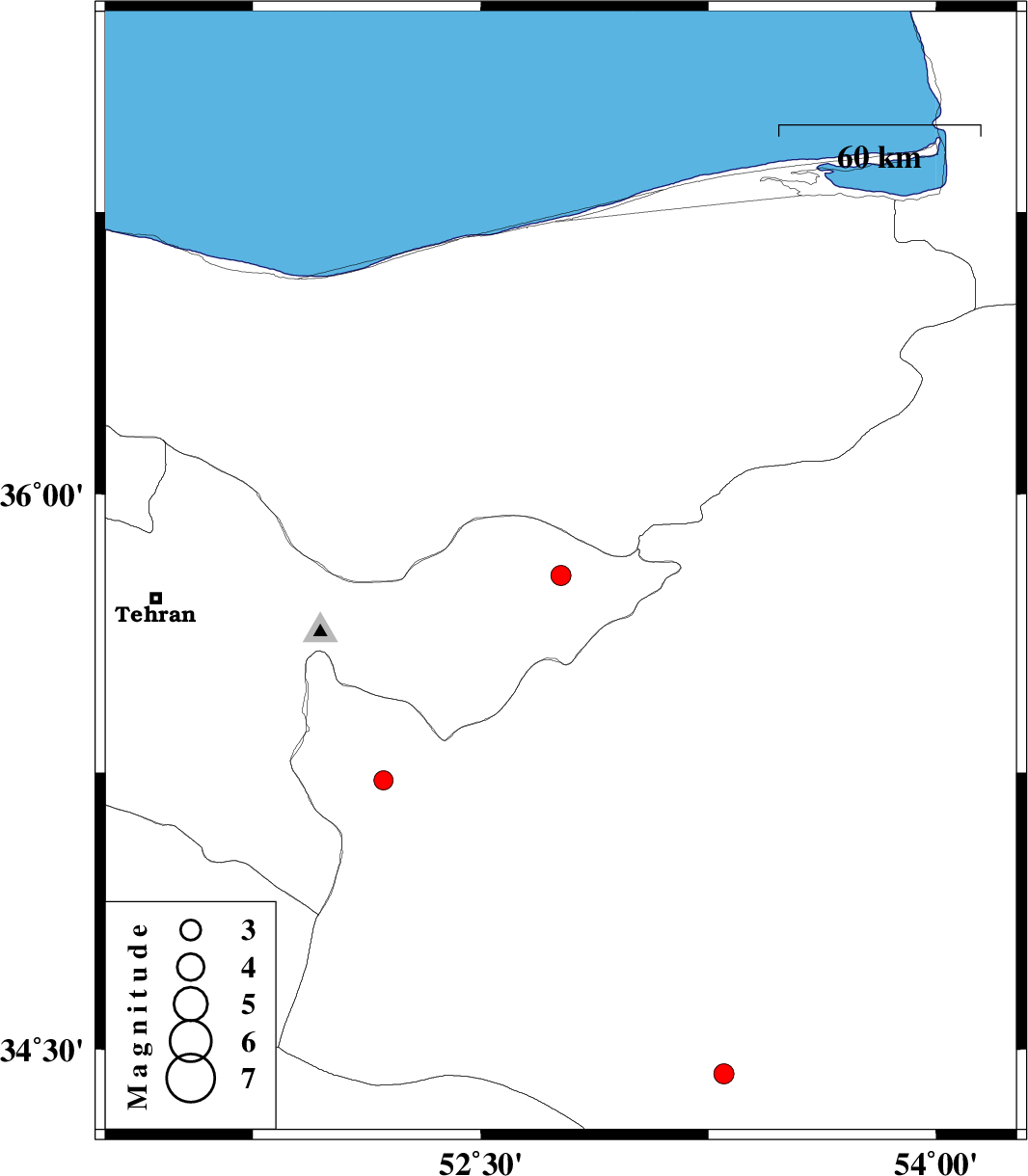 | 2017/06/07 | 09:32:58.1 | 14:02:58.1 | 35.229 | 52.18 | 14 | ML:2.8 | Semnan Province, 14 km -West of Garmsar |