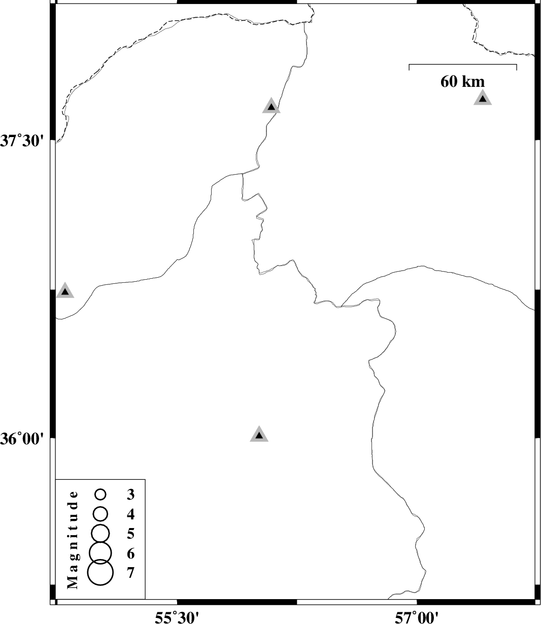 | 2017/06/21 | 10:37:33.6 | 15:07:33.6 | 36.675 | 56.238 | 16 | ML:2.8 | Semnan Province, 34 km South-West of Jajarm |