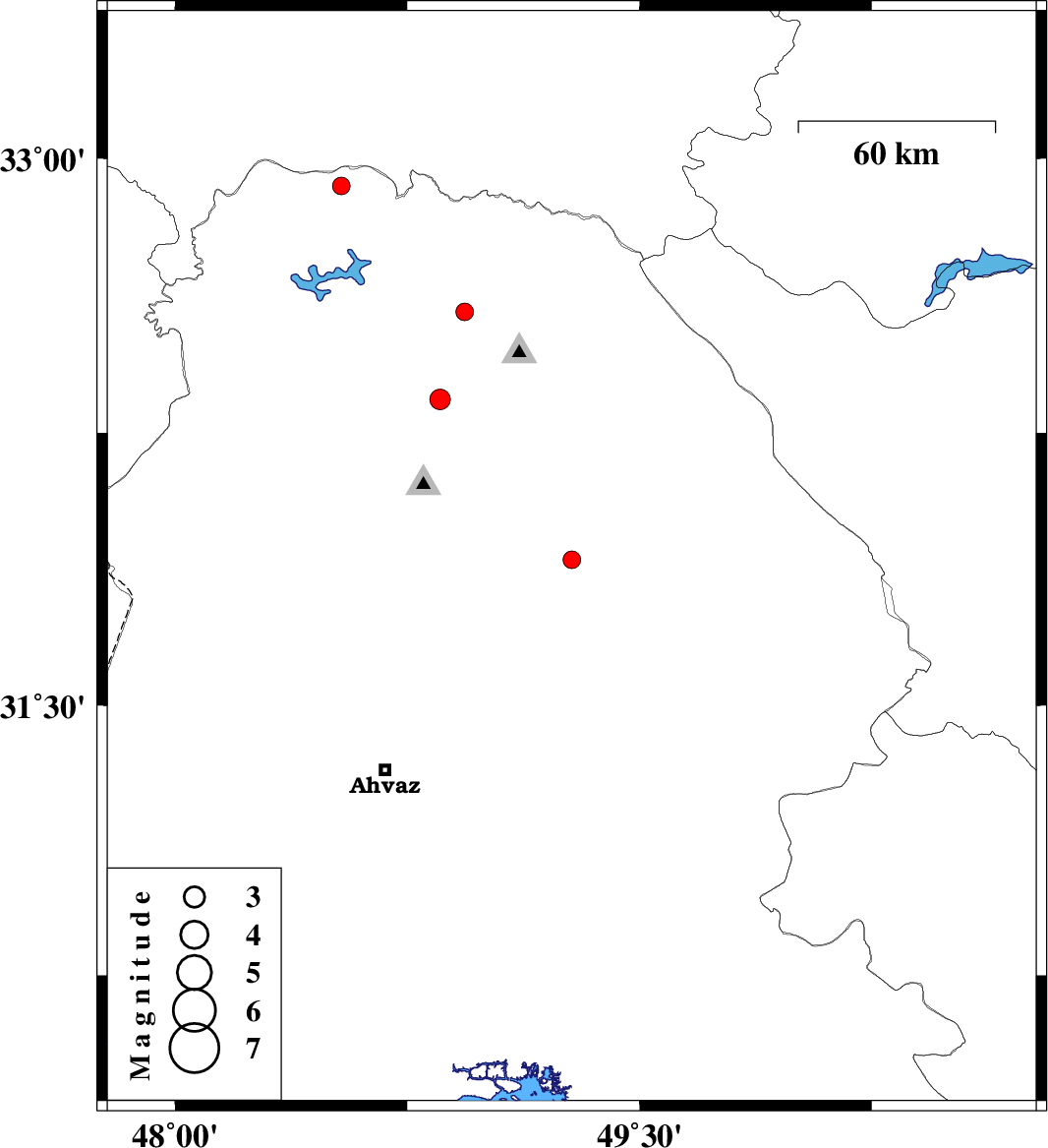 | 2017/06/22 | 16:52:56.4 | 21:22:56.4 | 32.581 | 48.935 | 14 | ML:2.5 | Khoozestan Province, 27 km North-West of Lali | ||