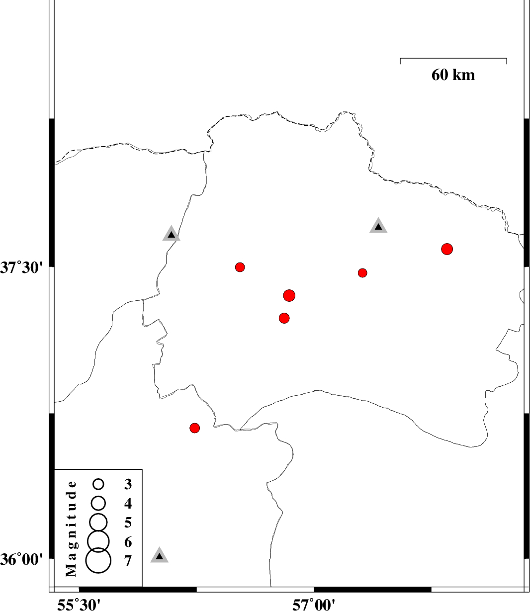 | 2017/06/01 | 06:19:14.6 | 10:49:14.6 | 37.59 | 57.849 | 6 | ML:3.2 | Khorasan(north) Province, 24 km North of Shirvan | ||