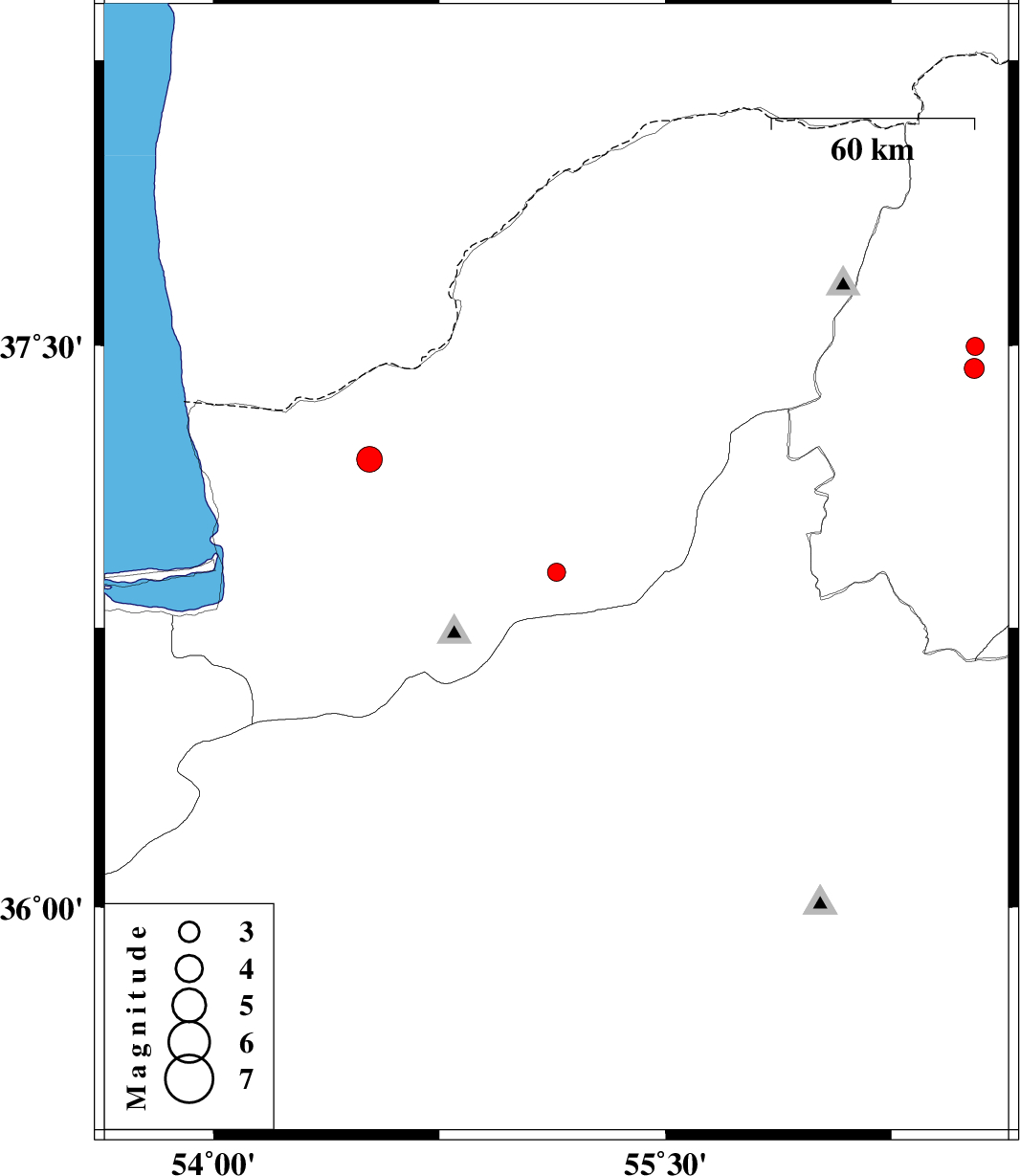 | 2017/06/30 | 19:22:39.5 | 23:52:39.5 | 37.198 | 54.518 | 26 | ML:3.8 | Golestan Province, 21 km North of Aq Qaleh | ||