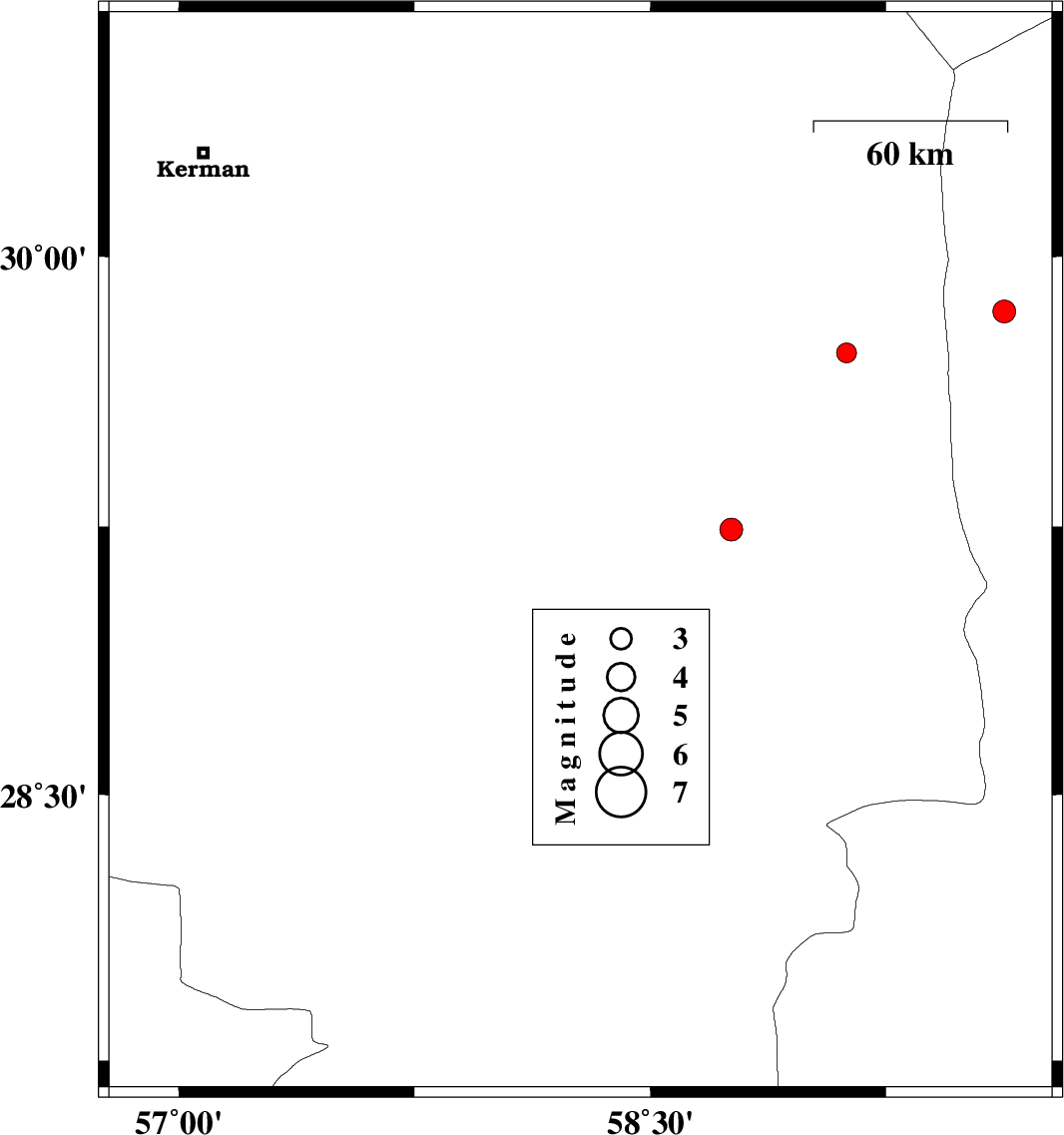 | 2017/06/29 | 16:43:49.3 | 21:13:49.3 | 28.13 | 57.22 | 16 | ML:2.7 | Kerman Province, 51 km North-West of Kahnuj | ||
