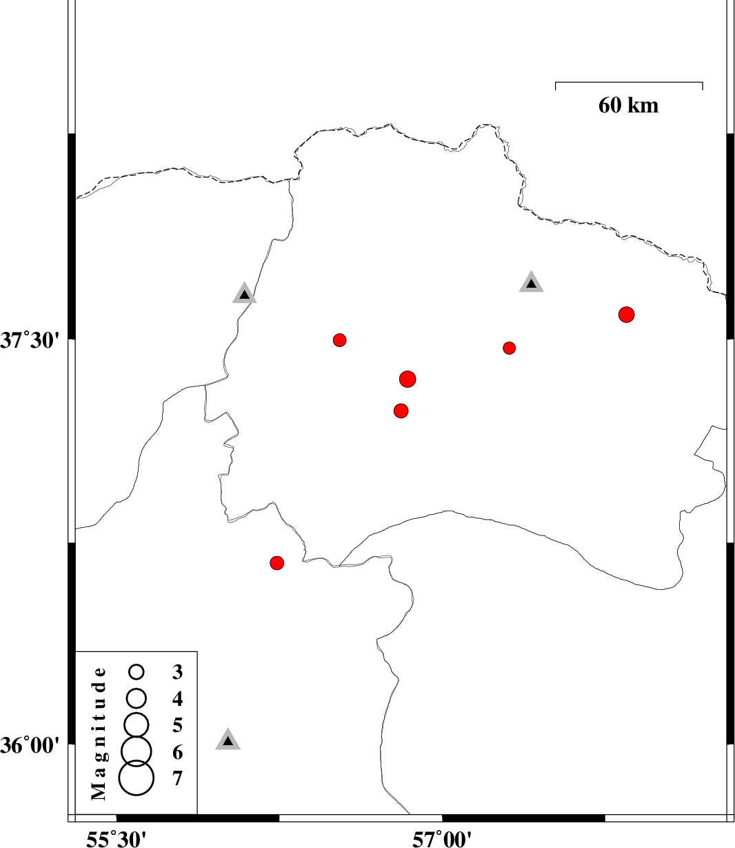 | 2017/06/01 | 06:19:14.6 | 10:49:14.6 | 37.59 | 57.849 | 6 | ML:3.2 | Khorasan(north) Province, 24 km North of Shirvan | ||