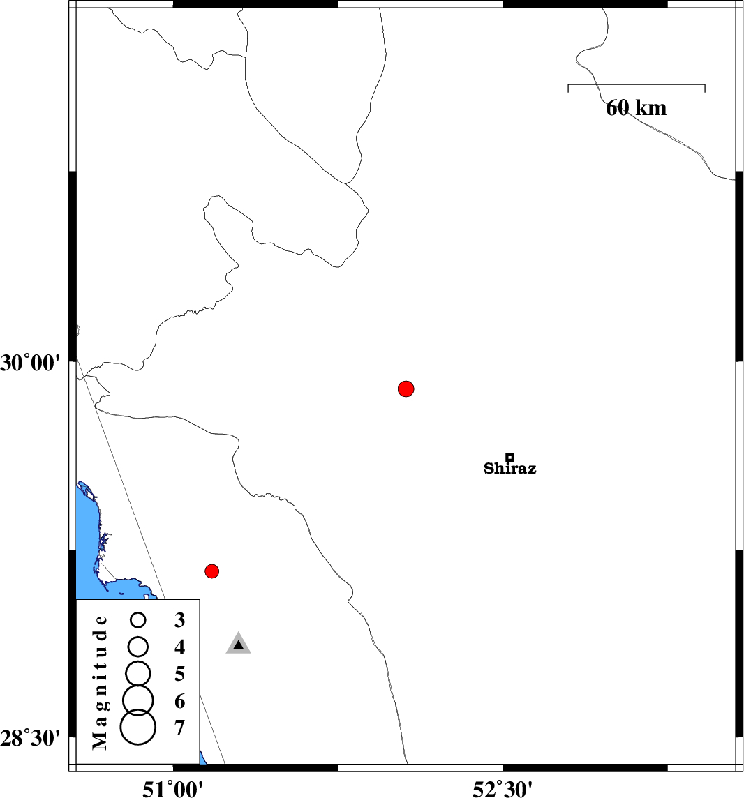 | 2017/06/14 | 06:00:27.6 | 10:30:27.6 | 29.164 | 51.177 | 14 | ML:2.8 | Bushehr Province, 11 km of Borazjan |