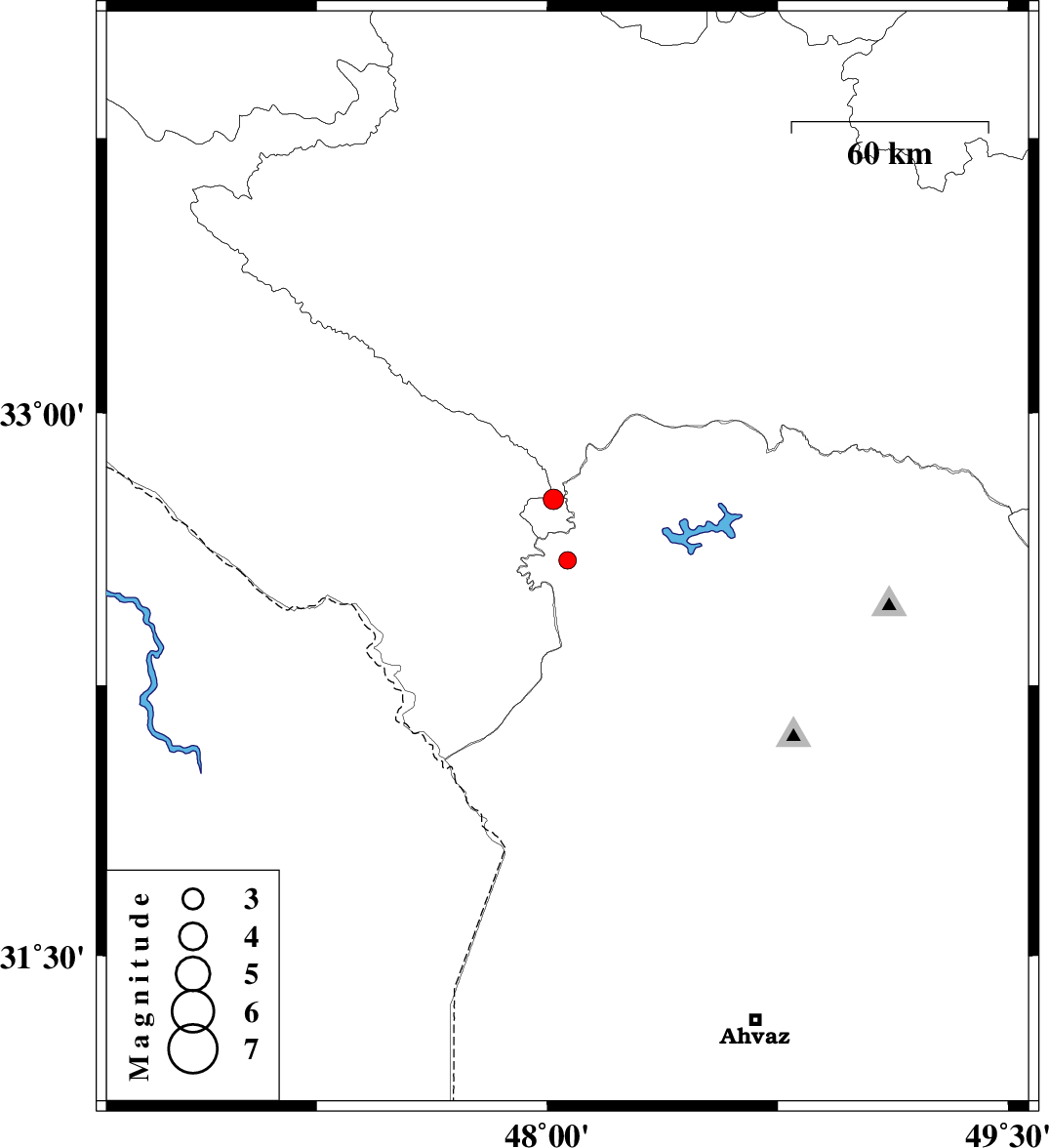 | 2017/06/03 | 23:25:10.3 | 03:55:10.3 | 32.595 | 48.066 | 14 | ML:2.6 | Khoozestan Province, 31 km North-West of Andimeshk | ||
