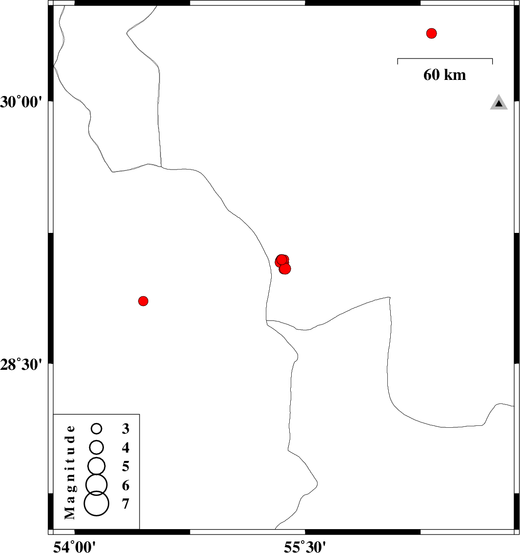 2017/07/13 11:07:08.5 15:37:08.5 29.08955.33414 ML:2.7 Kerman Province, 52 km South-West of Sirjan
