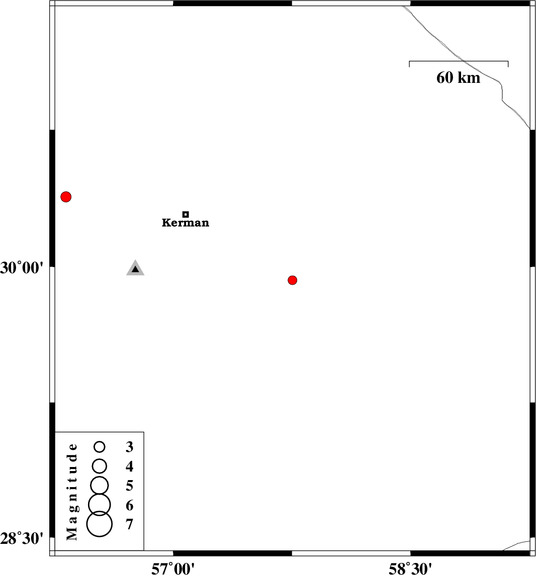 | 2017/07/13 | 23:29:36.5 | 03:59:36.5 | 29.925 | 57.753 | 18 | ML:2.6 | Kerman Province, 76 km South-East of Kerman | ||