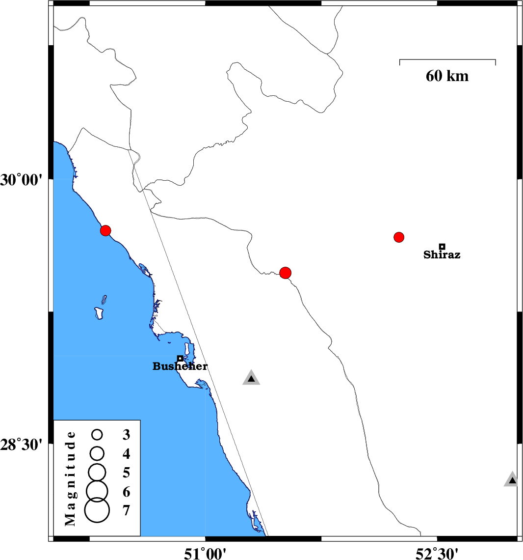 | 2017/07/15 | 00:00:22.1 | 04:30:22.1 | 29.672 | 52.252 | 14 | ML:3 | Fars Province, 28 km -West of Shiraz | ||
