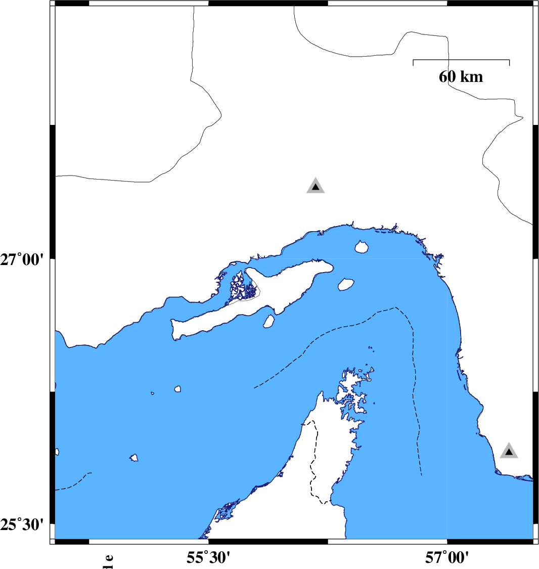 | 2017/07/19 | 22:06:43.5 | 02:36:43.5 | 26.914 | 56.037 | 12 | ML:2.7 | Persian Gulf, 23 km -West of Qeshm | ||