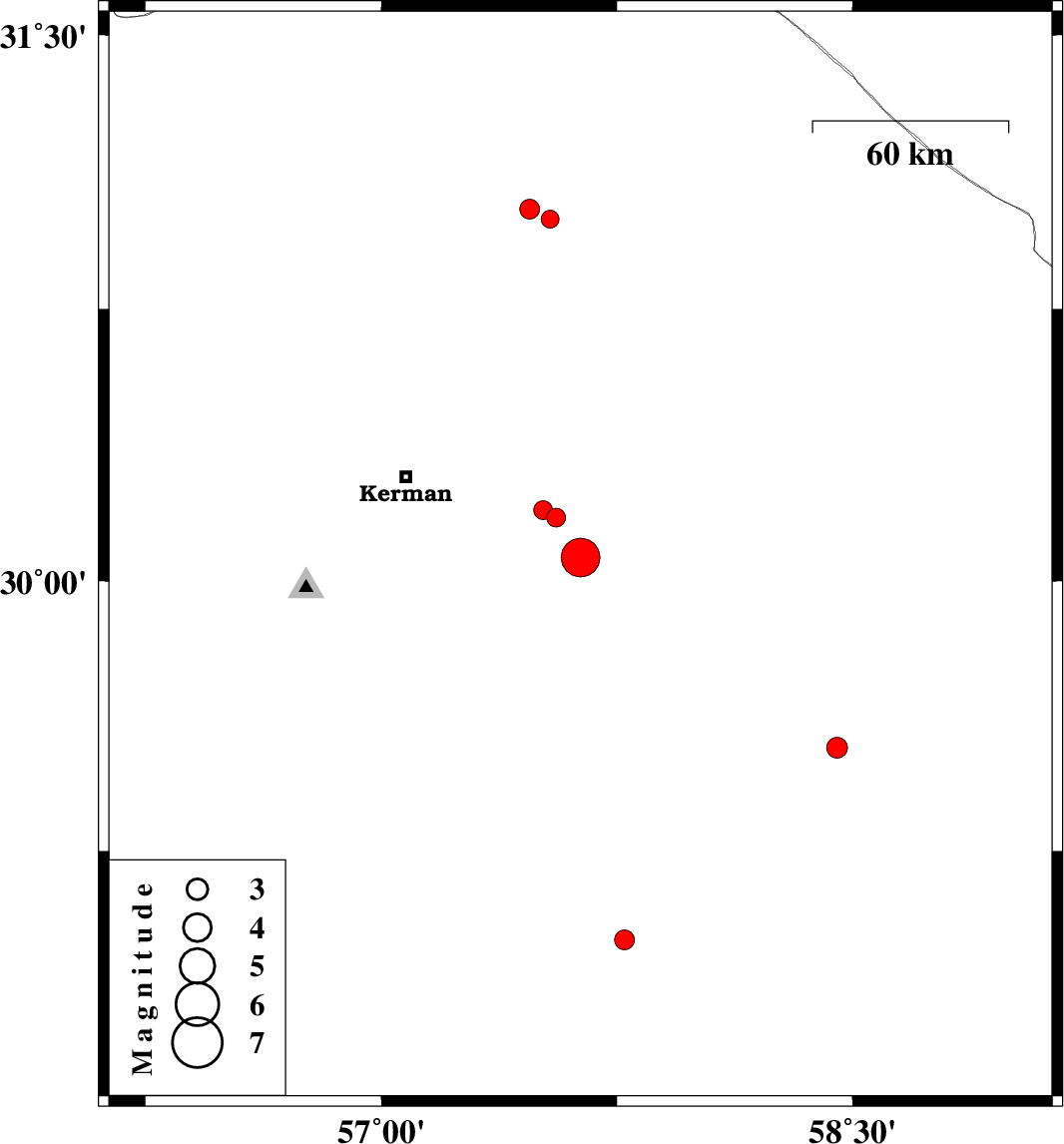 2017/07/23 17:32:12.3 22:02:12.3 30.06557.63411 Mb:5.5 Kerman Province, 59 km South-East of Kerman