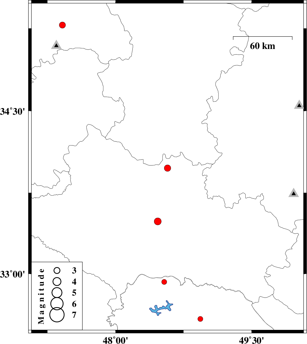 | 2017/07/12 | 09:42:23.8 | 14:12:23.8 | 33.977 | 48.573 | 14 | ML:3.2 | Lorestan Province, 19 km -West of Borujerd | ||