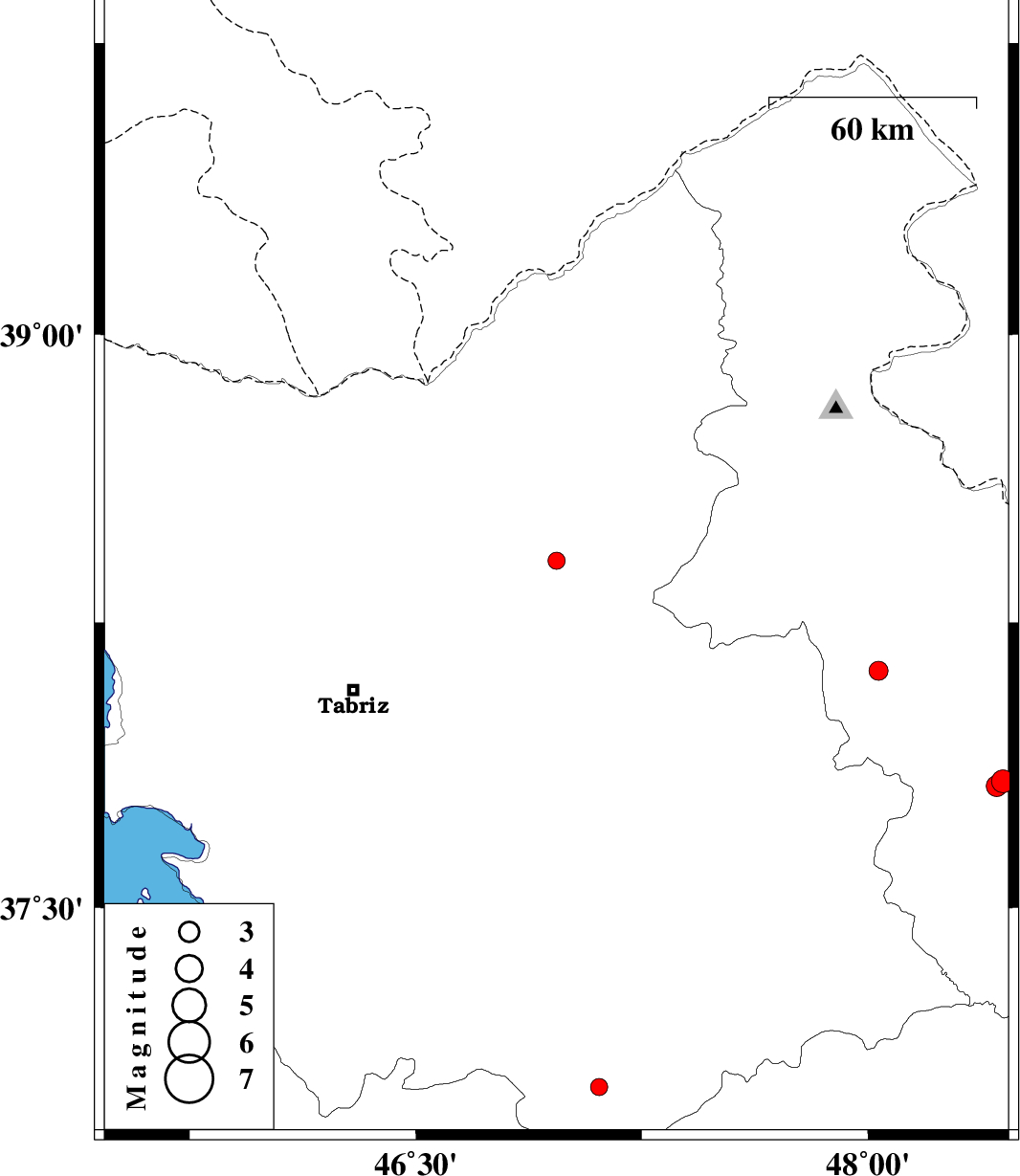 | 2017/07/13 | 03:17:03.2 | 07:47:03.2 | 37.833 | 48.448 | 14 | ML:3.4 | Ardebil Province, 16 km North of Givi | ||