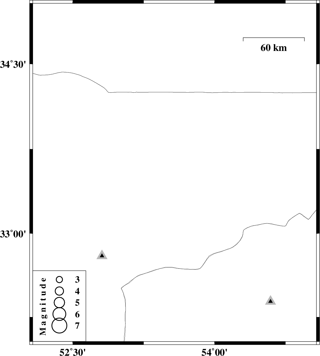 | 2017/07/28 | 23:16:21.7 | 03:46:21.7 | 33.53 | 53.577 | 16 | ML:2.9 | Esfahan Province, 87 km North-East of Nain |