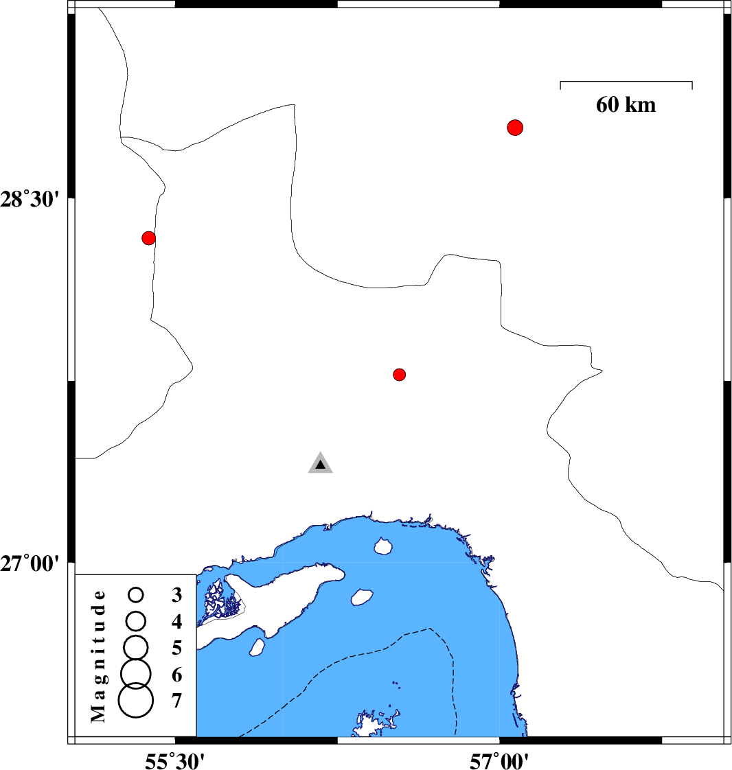 | 2017/08/01 | 06:58:10.3 | 11:28:10.3 | 27.775 | 56.536 | 21 | ML:2.6 | Hormozgan Province, 70 km North-East of Bandar-e abbas | ||