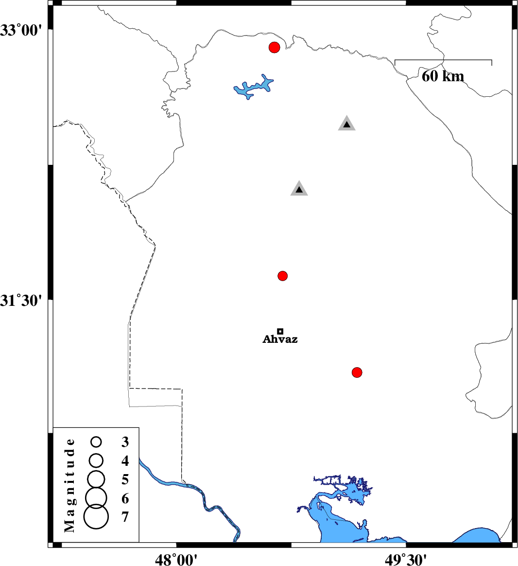 | 2017/08/01 | 16:26:48.7 | 20:56:48.7 | 31.631 | 48.693 | 15 | ML:2.8 | Khoozestan Province, 35 km North of Ahvaz |