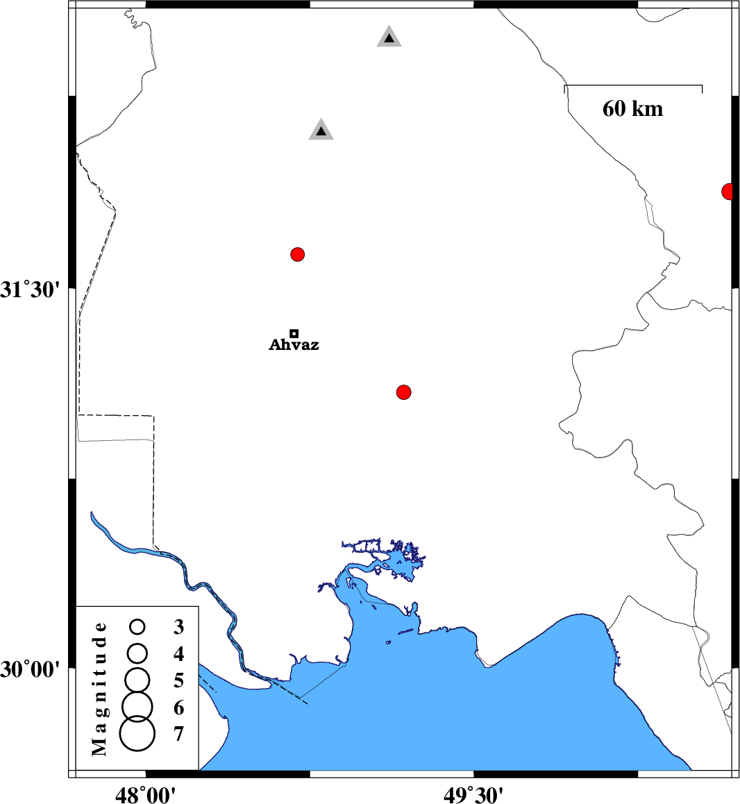 | 2017/08/01 | 16:26:48.7 | 20:56:48.7 | 31.631 | 48.693 | 15 | ML:2.8 | Khoozestan Province, 35 km North of Ahvaz | ||