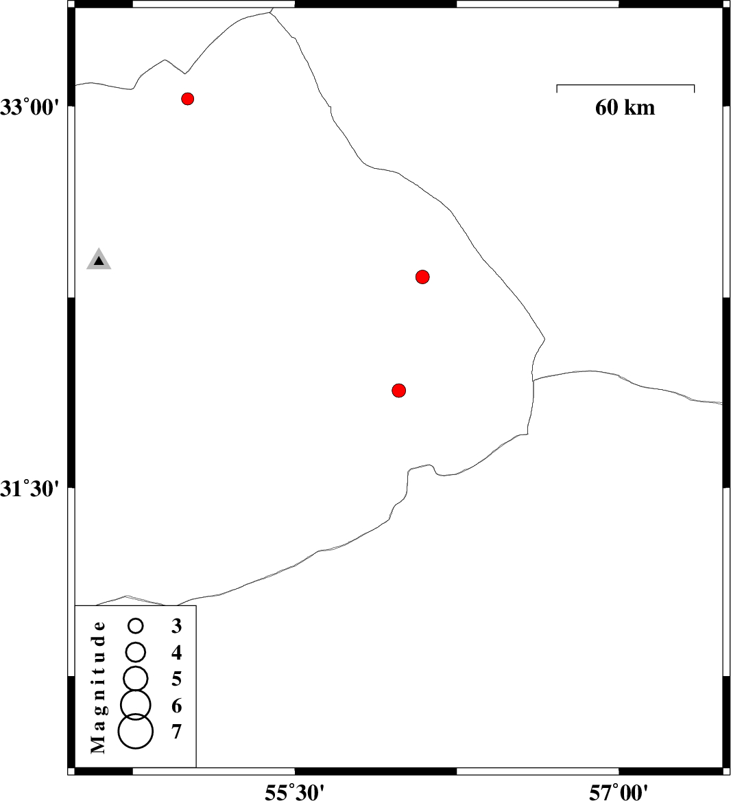 | 2017/08/08 | 01:30:18.7 | 06:00:18.7 | 31.883 | 55.981 | 14 | ML:2.8 | Yazd Province, 63 km North-East of Bafq | ||
