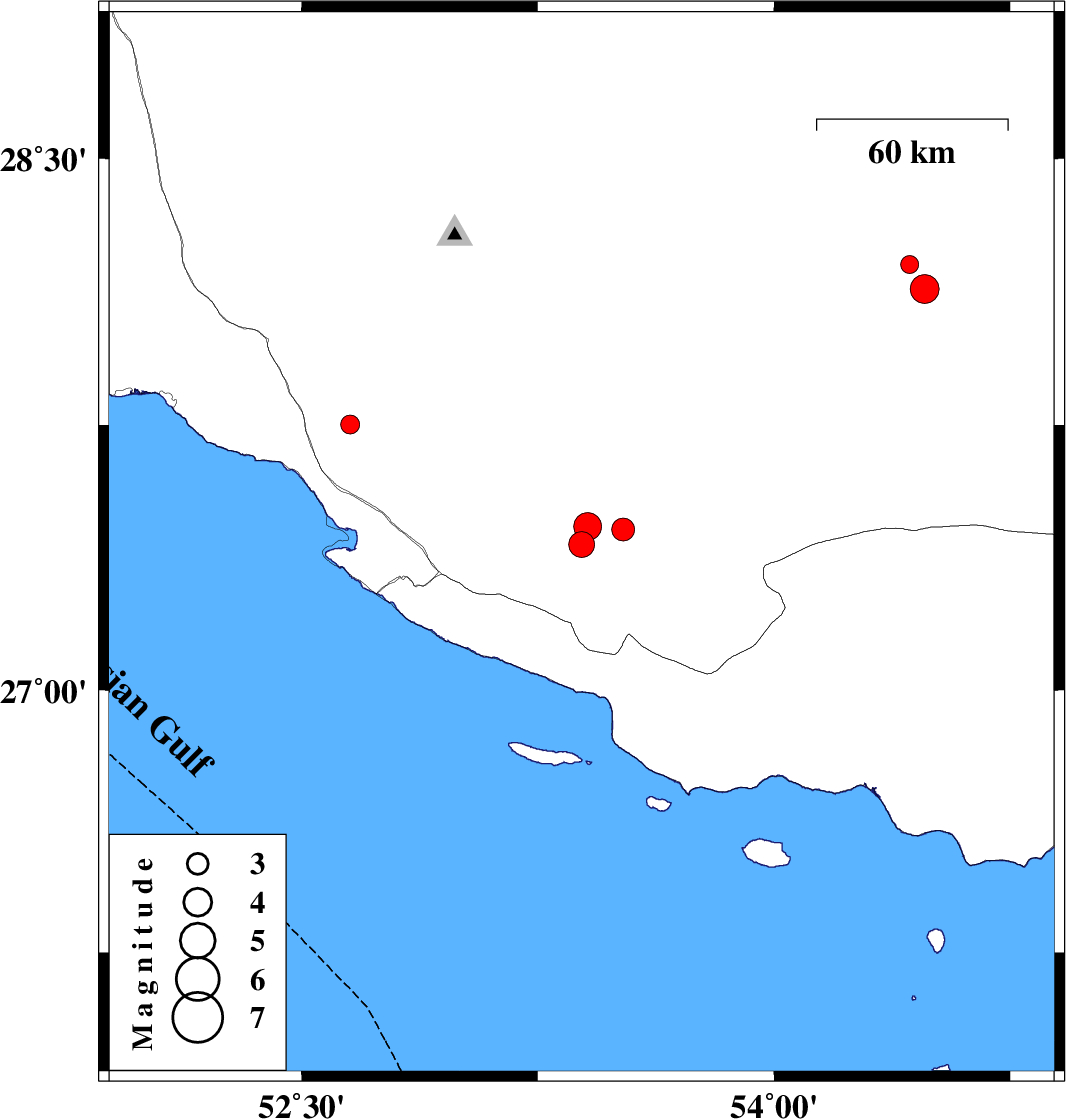 | 2017/08/10 | 13:50:15.3 | 18:20:15.3 | 27.464 | 53.409 | 15 | ML:3.9 | Fars Province, 28 km North-East of Lamerd | ||