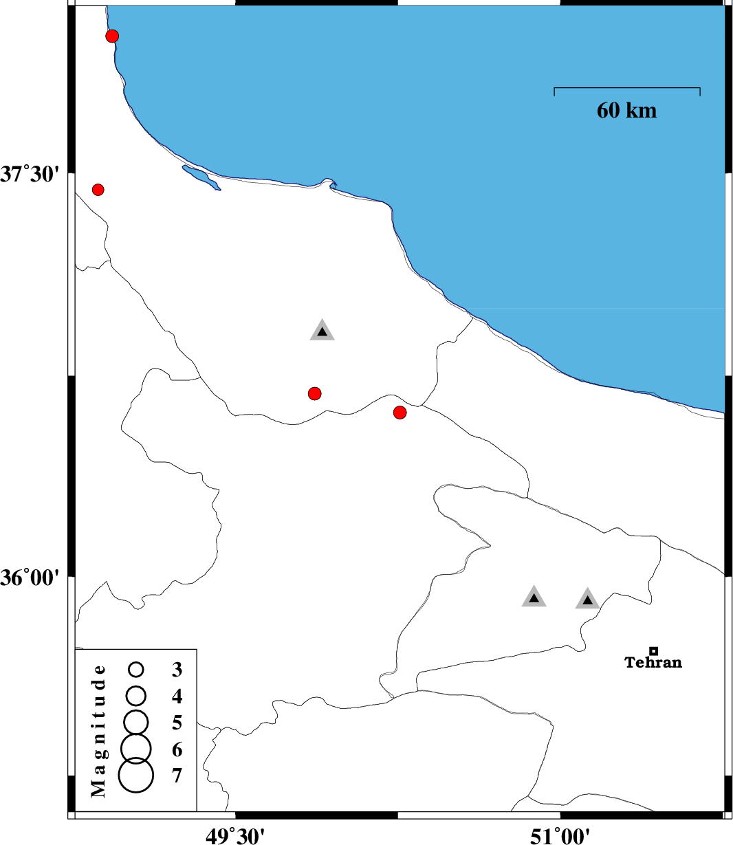 | 2017/07/19 | 01:57:22.9 | 06:27:22.9 | 38.002 | 48.93 | 14 | ML:2.7 | Caspian Sea, 23 km North of Hashtpar | ||