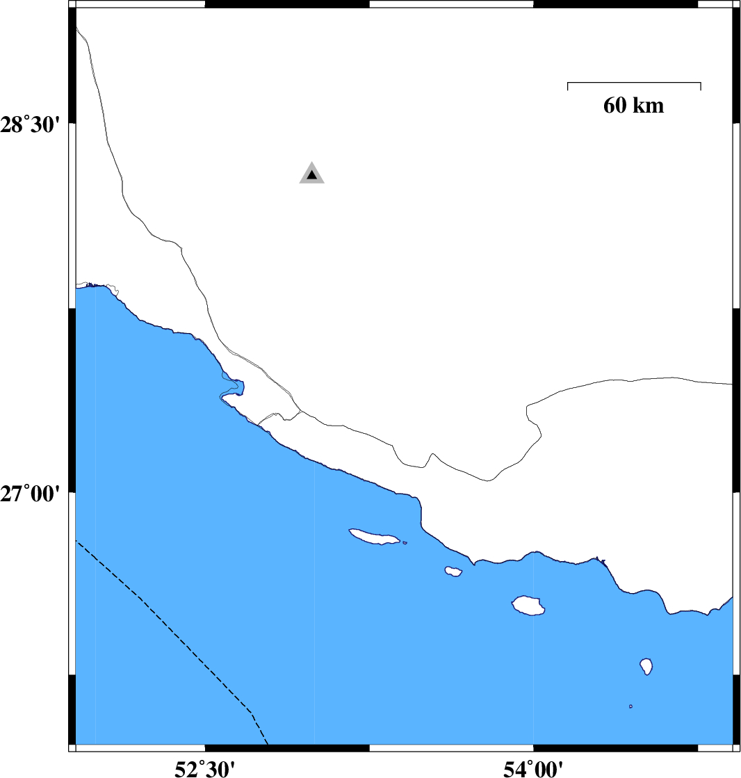 | 2017/08/10 | 13:50:15.3 | 18:20:15.3 | 27.464 | 53.409 | 15 | ML:3.9 | Fars Province, 28 km North-East of Lamerd | ||