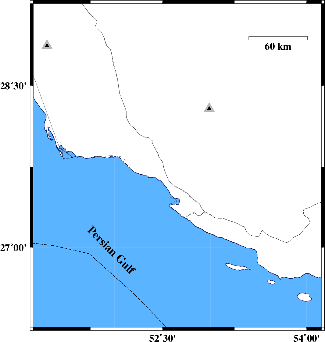 | 2017/07/29 | 14:29:56.1 | 18:59:56.1 | 28.559 | 51.417 | 15 | ML:2.6 | Bushehr Province, 11 km of Khormog | ||