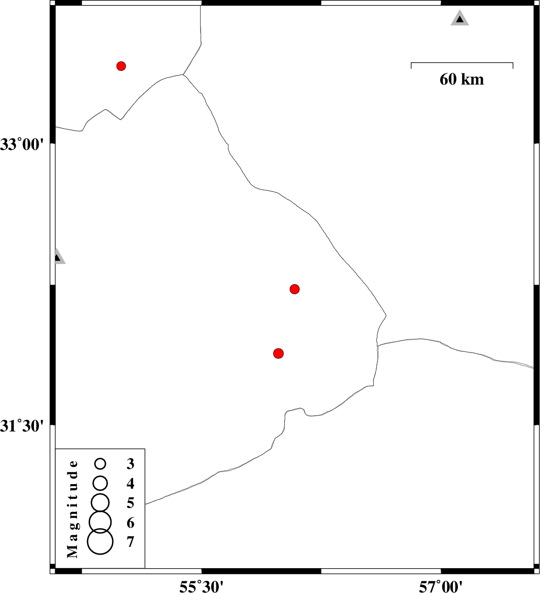 | 2017/08/08 | 01:30:18.7 | 06:00:18.7 | 31.883 | 55.981 | 14 | ML:2.8 | Yazd Province, 63 km North-East of Bafq | ||