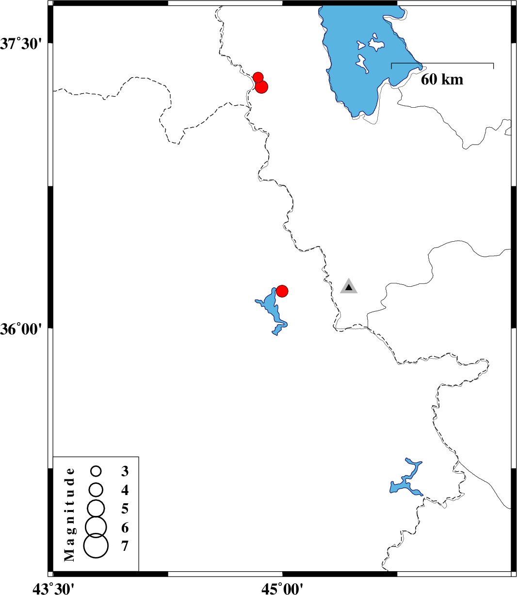 | 2017/08/15 | 05:35:49.2 | 10:05:49.2 | 36.195 | 44.996 | 15 | ML:3.5 | Iraq, 42 km -West of Sardasht | ||