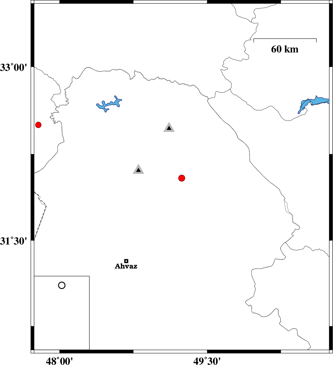 | 2017/08/20 | 02:08:17.1 | 06:38:17.1 | 32.042 | 49.241 | 15 | ML:2.9 | Khoozestan Province, 13 km North of Masjed Soleyman | ||