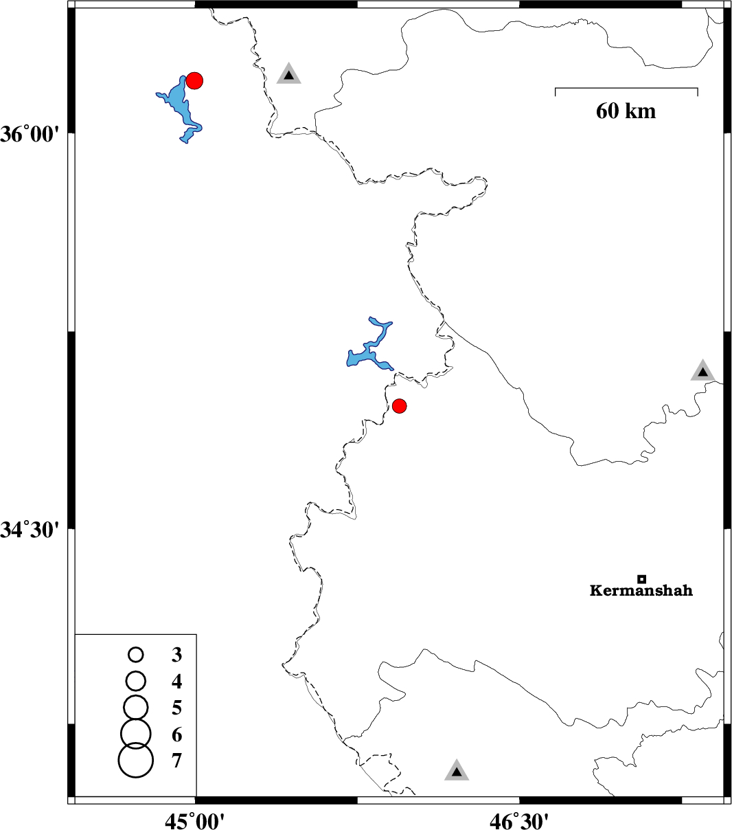 | 2017/08/15 | 05:35:49.2 | 10:05:49.2 | 36.195 | 44.996 | 15 | ML:3.5 | Iraq, 42 km -West of Sardasht |