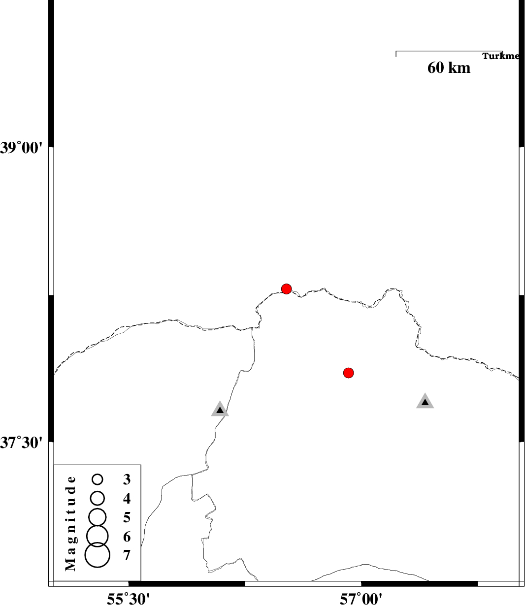 | 2017/07/31 | 02:03:59.7 | 06:33:59.7 | 37.854 | 56.917 | 15 | ML:2.9 | Khorasan(north) Province, 34 km North of Ashkhaneh |